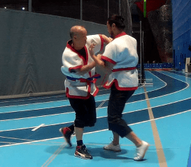 -Literally, the term means catch and grab in Chinese. Like wrestling, it is a method of combat in really close quarter, in between striking range and wrestling range, and it is coupled with throws and take-downs as well. Unlike, wrestling, however, it involves locking of the joints to inflict pain on the opponent, which is forbidden in a wrestling match. Grappling is easy to learn but difficult to master. That is because when two combatants are actively trying to strike and avoid getting hit, their minds are set to exploit openings. Grapples are counter-intuitive in this context, as a grab means fixing an arm to a point. The way to do grappling is, therefore, not think about grappling at all. What one needs to do is to follow a natural course of action in terms of strikes and take targets of opportunity, such as fingers, and use what is given by the opponent. There is also no forms in grappling, as one cannot practice the moves on their own. In order to gain mastery in this skill, the practitioner has to have a thorough understanding of body physics/mechanics and the pattern of movements, and once they have attained this level of skill, they are free to grapple however they want.