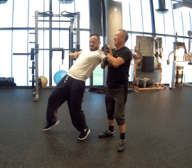 –Body movement here does not mean the mere activities of the body parts, but the movement of the whole body across space and time in a orchestrated manner. In order to move efficiently, safely, and, above all, with the ability to produce timely reactions, one’s body (or body parts) has to move in sync and in rhythm, with the right twists and turns to store up energy in a natural flow, so the movement(s) is logical and without giving away any intention. In contrast, movement without body turning and twisting, take for example, feet moving forward while the body core is upright and squared, is to be said without Body Movement.
